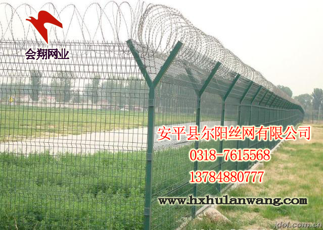 機(jī)場護(hù)欄網(wǎng)又稱作“Y型安全防御護(hù)網(wǎng)”,是由V型支架立柱加強(qiáng)型焊接片網(wǎng),安全防盜連接件和熱鍍鋅刀片刺網(wǎng)組成強(qiáng)度和安全防御性級別很高。